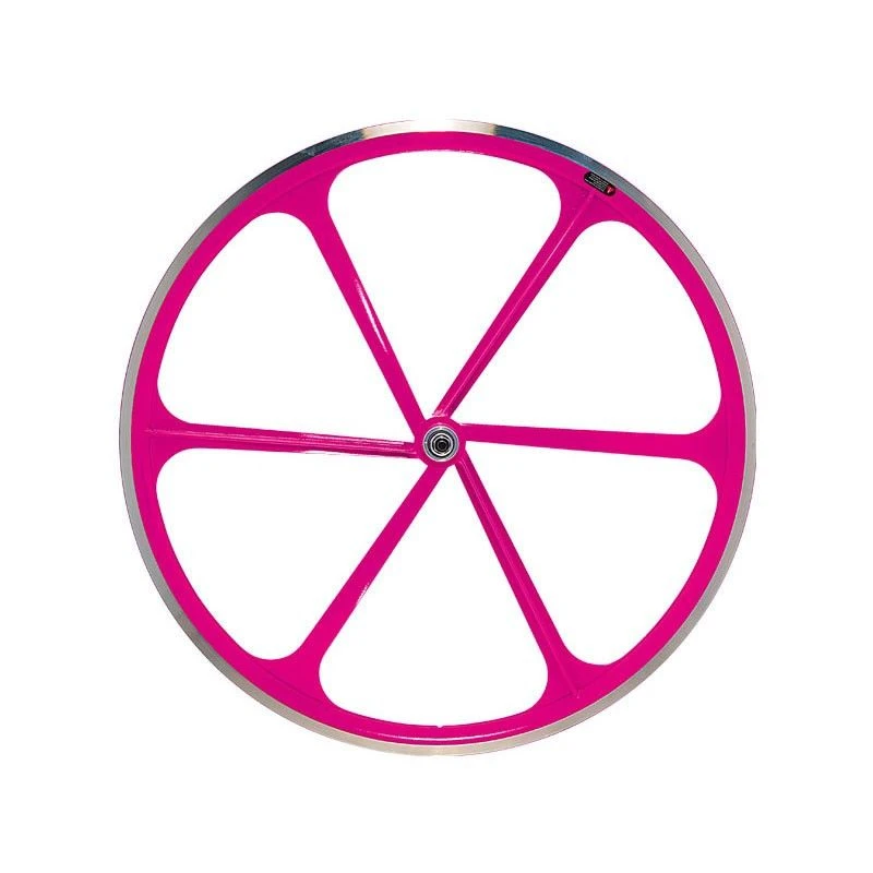 Ruota anteriore Fixed a 6 razze in alluminio rosa neon